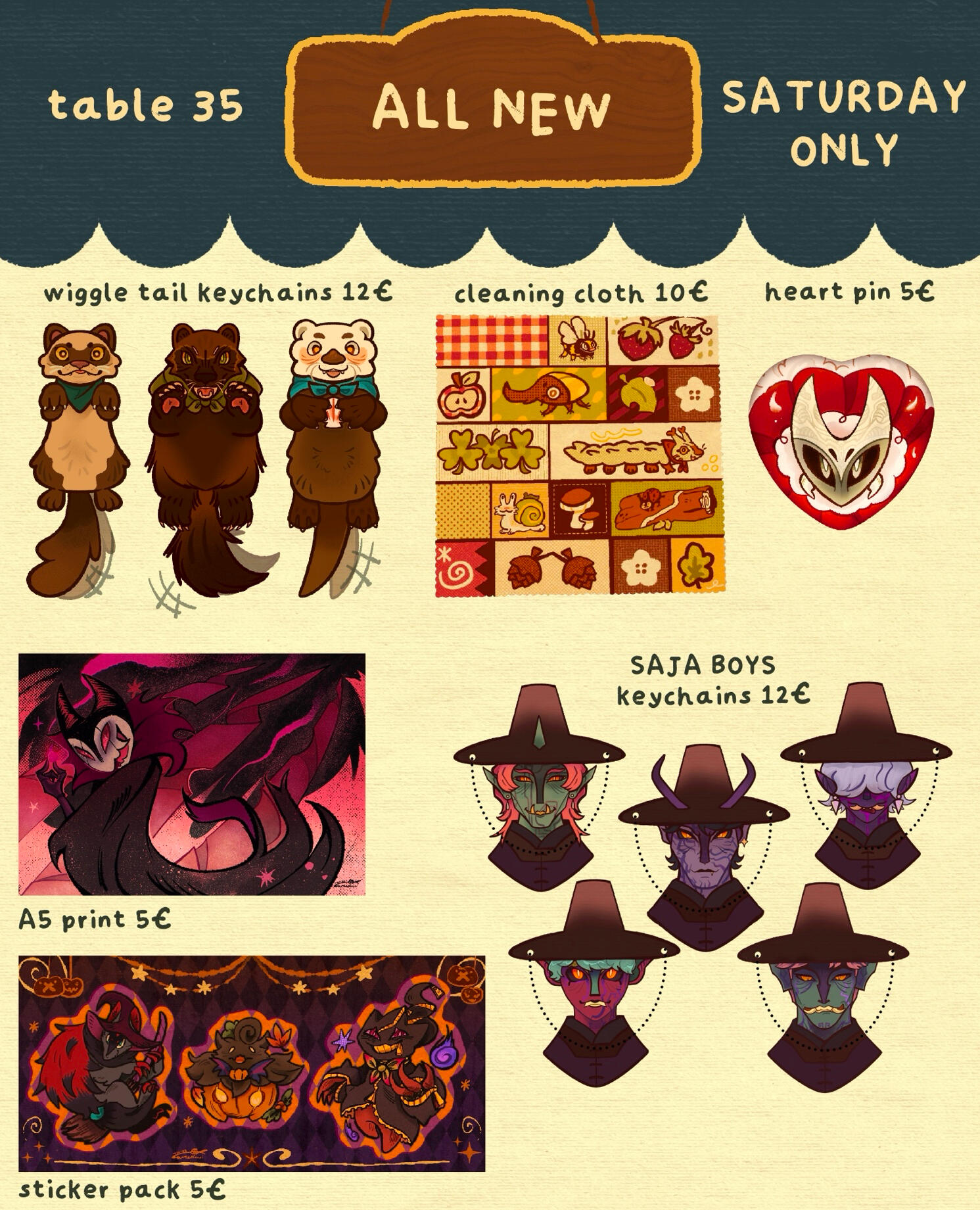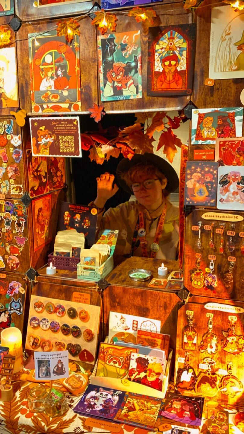 ✸ i have been participating in conventions since 2019.✸ i want to share the coziness i feel during autumn, and to let people experience this lovely amber feeling all year long with my creations 🍁✸ my table is full of a variety of things, every con i am always trying to make something new ⭐️